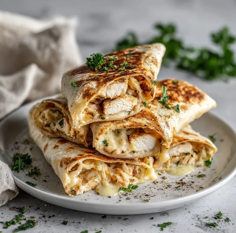 What makes this recipe special isn’t just the flavor (although the flavor is next-level). It’s the balance. You get savory garlic notes without overpowering the chicken, gooey cheese without heaviness, and wraps that crisp beautifully without drying out. Whether you pan-toast them, grill them, or even bake them, these wraps deliver every single time.