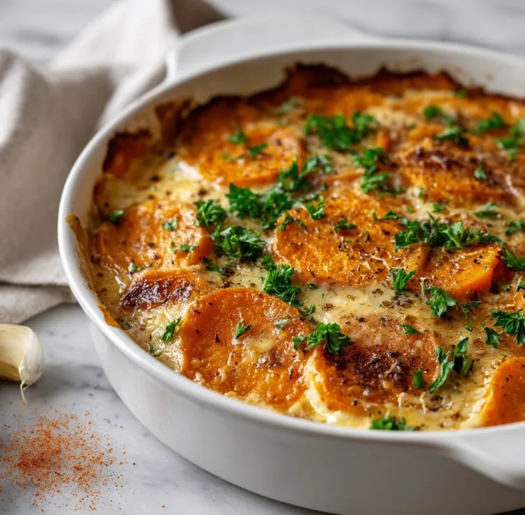 Creamy Garlic Sweet Potato Bake – The Ultimate Savory Comfort Side Dish