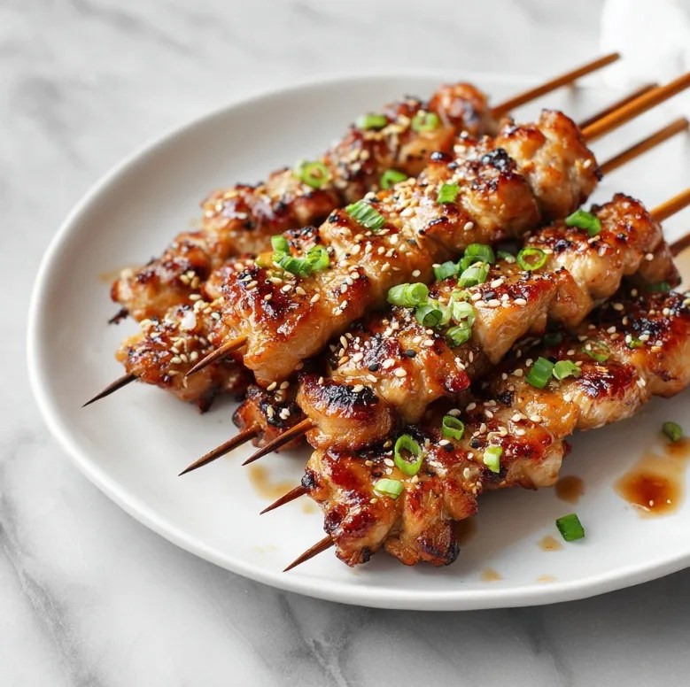 Tender grilled chicken skewers brushed with a sweet-savory homemade yakitori sauce, inspired by authentic Japanese street food.